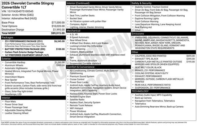2026 Chevrolet Corvette Stingray 1LT