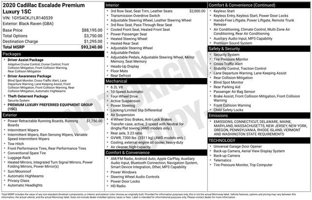 2020 CADILLAC Escalade Premium Luxury